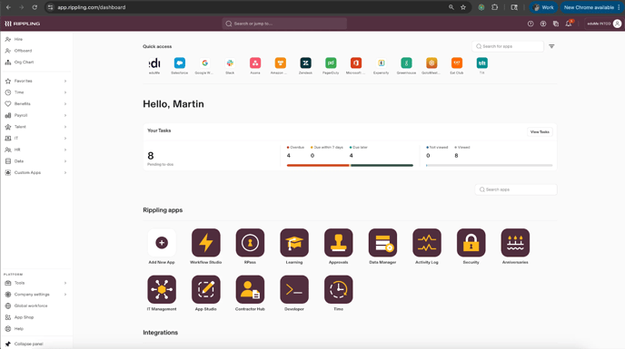 - Once the setup is complete, the eduMe app link will appear under Quick Access on your Rippling homepage.